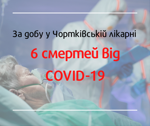 У Чортківській центральній міській лікарні за останню добу, 3 листопада, померло шестеро людей, котрі хворіли на COVID-19