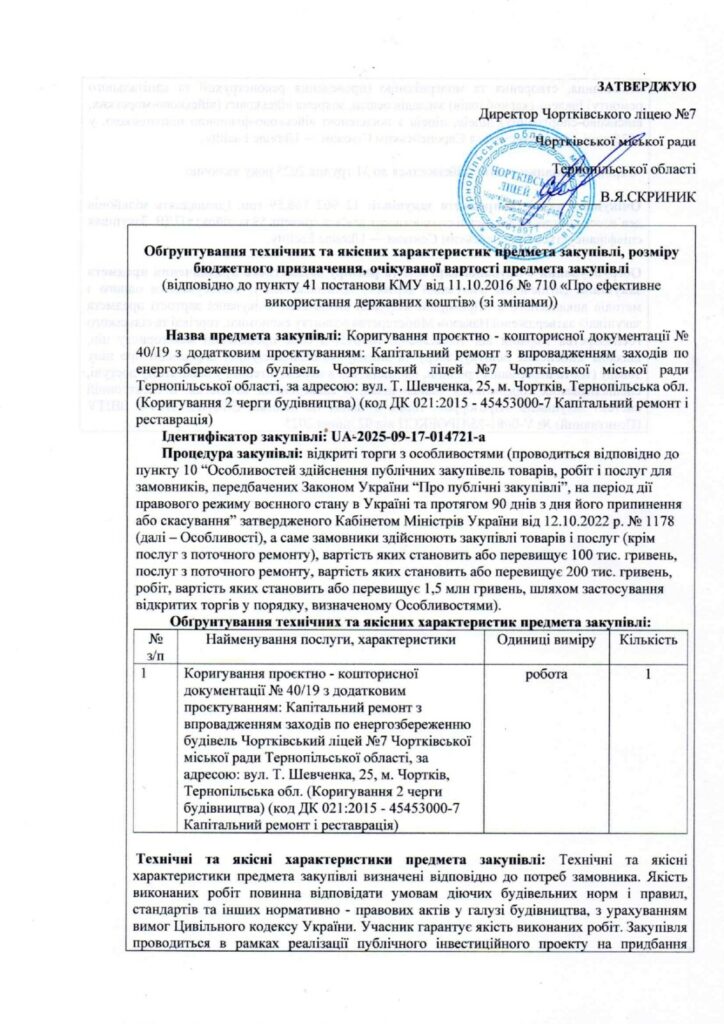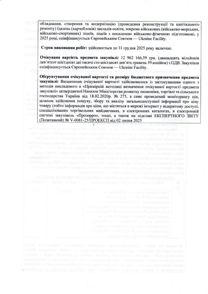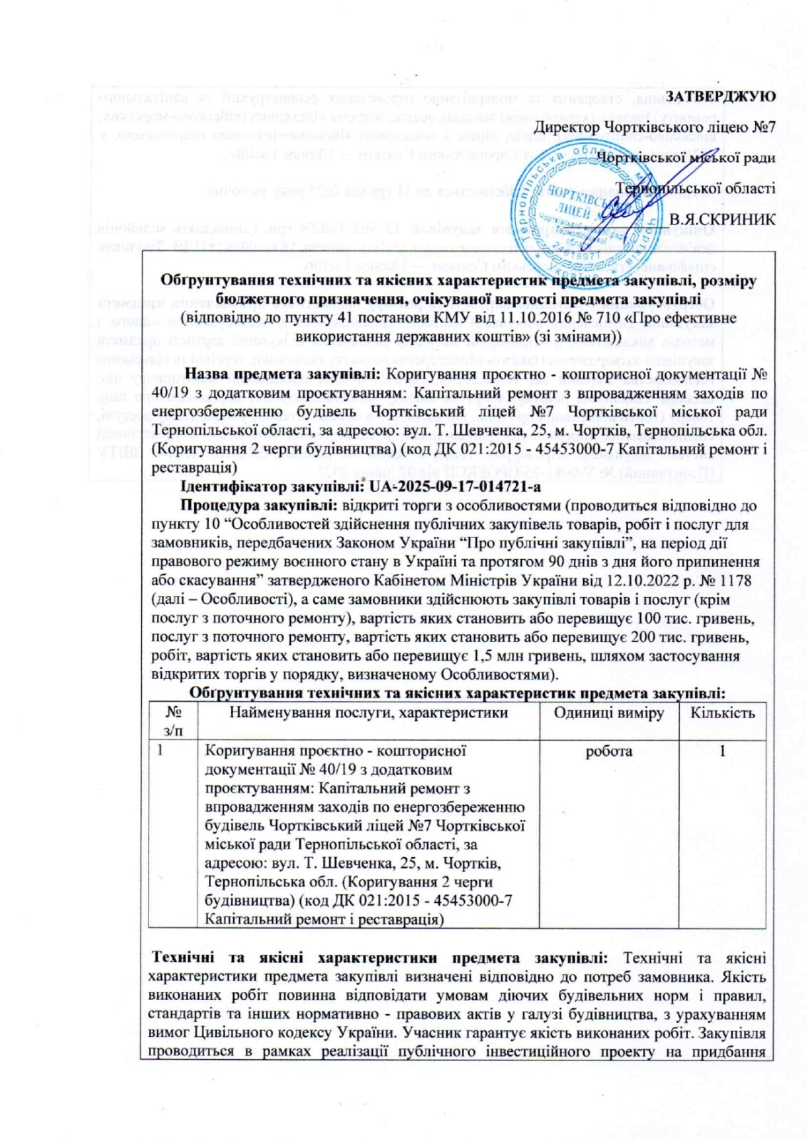 Обгрунтування технічних та якісних характеристик предмета закупівлі, розміру бюджетного призначення, очікуваної вартості предмета закупівлі