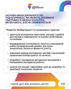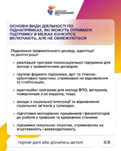 Коротко інформацію виклали на картинках, а от детальну інформацію знайдете на сайті УМФ – https://uyf.gov.ua/programs/blahopoluchchia-molodi-fo