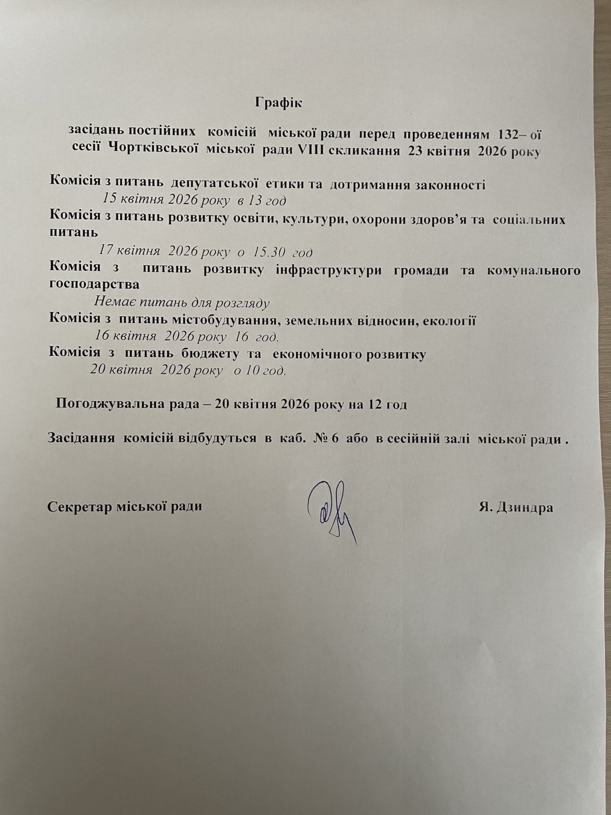 Проект порядку денного засідання комісії з питань депутатської етики та дотримання законності 15 …Читати даліЗМІНИ У ГРАФІКУ РУХУ АВТОБУСА «БІЛА – ЧОРТКІВ»!