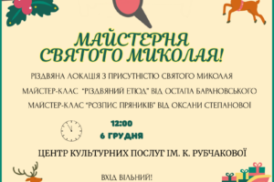 Святий Миколай уже в дорозі до наших діток та дорослих Чортківської громади! Прийди 6 грудня о 12 год. у Центр культурних послуг ім. Катерини Рубчакової. А там на тебе вже чекатиме: Майстер-клас «Різдвяний етюд» від Остапа Барановського. Разом малюватимемо зимову казку та створимо власний різдвяний настрій. Майстер-клас «Розпис пряників» від Оксани Степанової. Діти зможуть […]
