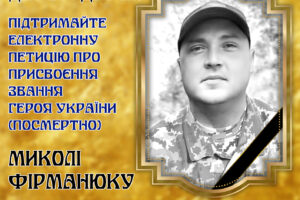 Щоб підтримати петицію, необхідно перейти за посиланням – https://petition.president.gov.ua/petition/242254 , авторизуватись та натиснути «Підписати». Потрібно зібрати 25 тисяч голосів, щоб петиція потрапила на розгляд до Президента. Фірманюк Микола Богданович народився 16 грудня 1987 року в місті Чортків. У 2003 році закінчив Чортківську загальноосвітню школу I-III ступенів №6. У 2006 році закінчив Чортківське вище […]