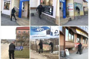 Чортків продовжує боротися із вивісками, банерами та рекламою, котра не відповідає нормам чи була встановлена без погодження. Раніше на засіданні виконавчого комітету вкотре ухвалили рішення про демонтаж ще кількох рекламних вивісок у Чорткові. Рекламу комунальники демонтовуватимуть по вул. Шевченка, Залізнична, Незалежності.