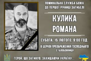 Поминальна служба Божа відбудеться у суботу, 15 лютого, о 9 год. у церкві Преображення Господнього в с. Білобожниця. Кулик Роман Романович народився 15 грудня 1972 року в м. Чорткові. З 2015 року розпочав волонтерську діяльність, допомагаючи воїнам Збройних Сил України протистояти московським окупантам. Також брав активну участь у військовій реконструкції боїв. У перший день […]