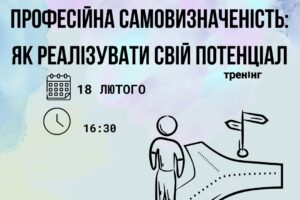 Як знайти свій шлях у професійному розвитку? Як реалізувати свої таланти та здібності? Ми допоможемо вам розкрити свій потенціал та зробити перший крок до успіху! Місце: Культурно-інтеграційний центр Чорткова Дата: 18 лютого Час: 16:30 На тренінгу ви: дізнаєтеся, як визначити свої сильні сторони; отримайте корисні поради щодо кар’єрного розвитку; знайдете шляхи для реалізації своїх […]
