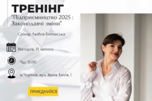 Запрошуємо діючих та майбутніх підприємців, власників бізнесу, керівників, інших представників бізнесу та влади взяти участь в тренінгу «Підприємництво 2025: Законодавчі зміни», який відбудеться вже завтра, 11 лютого, об 11 год. в Чортківській філії Тернопільського обласного центру зайнятості за адресою: м.Чортків, вул Івана Хичія, 1 (контактний телефон – +380963169169, +380963551846). Спікер: провідна експертка з питань […]
