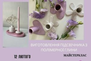 Коли: 12 лютого, 16:00 Де: Культурно-інтеграційний центр Чорткова, вул. Ст. Бандерия, 37 Розкрий свій креативний потенціал та створи підсвічник з полімерної глини! Поринь у процес ліплення, опануй нові техніки і зроби оригінальний декор для свого дому. Участь безкоштовна, але місця обмежені! За бажання можна задонатити на ЗСУ. Реєстрація обов’язкова за тел.: +380971313002