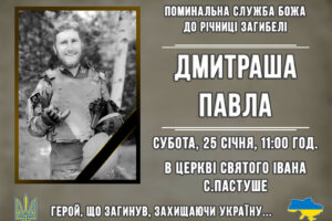 Поминальна служба Божа відбудеться у суботу, 25 січня, об 11 год. у церкві святого Івана с. Пастуше. Дмитраш Павло Олегович народився 13 квітня 1996 року в селі Пастуше Чортківського району. Вчився в Чортківській гімназії імені Маркіяна Шашкевича, одночасно здобував музичну освіту в Заводській державній школі мистецтв.Продовжив навчання в Теребовлянському вищому училищі культури. Вищу освіту […]