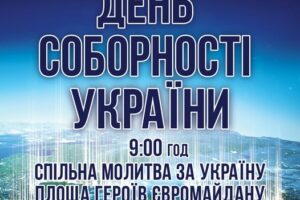 Запрошуємо долучитись громаду до заходів з нагоди Дня Соборності України. 9 год. – спільна молитва за Україну (площа Героїв Євромайдану) 17 год. – показ документальної стрічки «Вони дивляться на нас з неба…», історії полеглих героїв Володимира Вітіва та Василя Мармуса – синів учасників «Росохацької групи» (Центр культурних послуг ім. К. Рубчакової)
