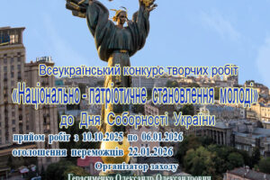 З нагоди Дня Соборності України Інститут політико-правових та релігійних досліджень проводить щорічний Всеукраїнський конкурс творчих робіт «Національно-патріотичне становлення молоді». Його мета – сприяти утвердженню української ідентичності, поширенню патріотичних ідей, підтримати талановиту молодь та заохотити її до творчості, що відображає історію, культуру та героїчну боротьбу українського народу. Конкурс проводиться за підтримки Міністерства молоді та […]