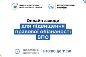 З 21 жовтня розпочинається серія правопросвітницьких онлайн заходів для підвищення обізнаності ВПО. Про це повідомив Омбудсман України Дмитро Лубінець. 👉 «На вас чекають виступи спікерів про практичні можливості у різних сферах. Ви зможете ставити свої запитання, а відповідатимуть на них представники міністерств та Офісу Омбудсмана», — зазначив Дмитро Лубінець. Зареєструватися на вебінари можна за посиланням: […]